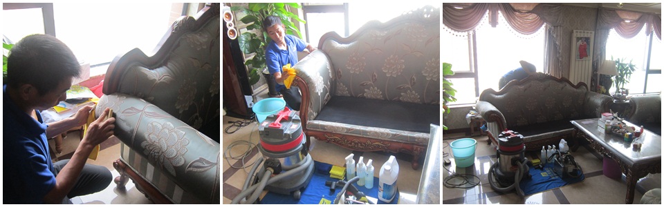 3、沙发表面机器清洗,缝隙处手工深入40mm清洁。