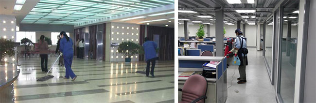 4)擦抹:从门口开始,依次擦拭室内家具和墙壁等。毛巾应按规定折迭、翻面。擦拭每一件家具时,应由高到低,先里后外。抹墙壁时,重点擦拭墙壁饰物、电灯开关插座盒、空调、门窗、窗台等。大幅墙面、天花等的清洁为定期进行,也可穿插在日常保洁中进行。
