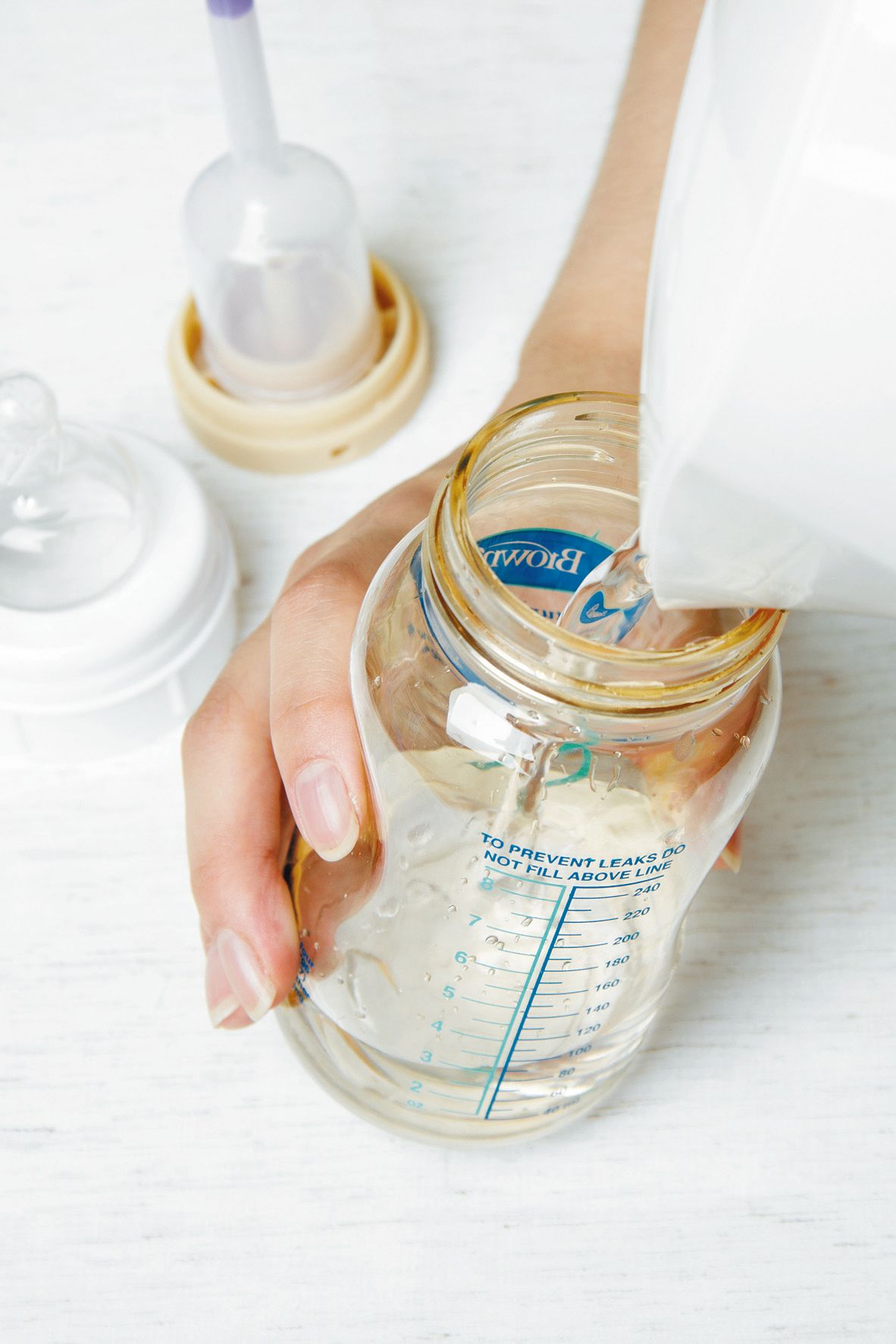 搅拌均匀:盖上奶瓶盖,然后上下颠倒奶瓶,使奶粉和水充分混合。避免用力摇晃奶瓶,以防止产生过多的气泡。